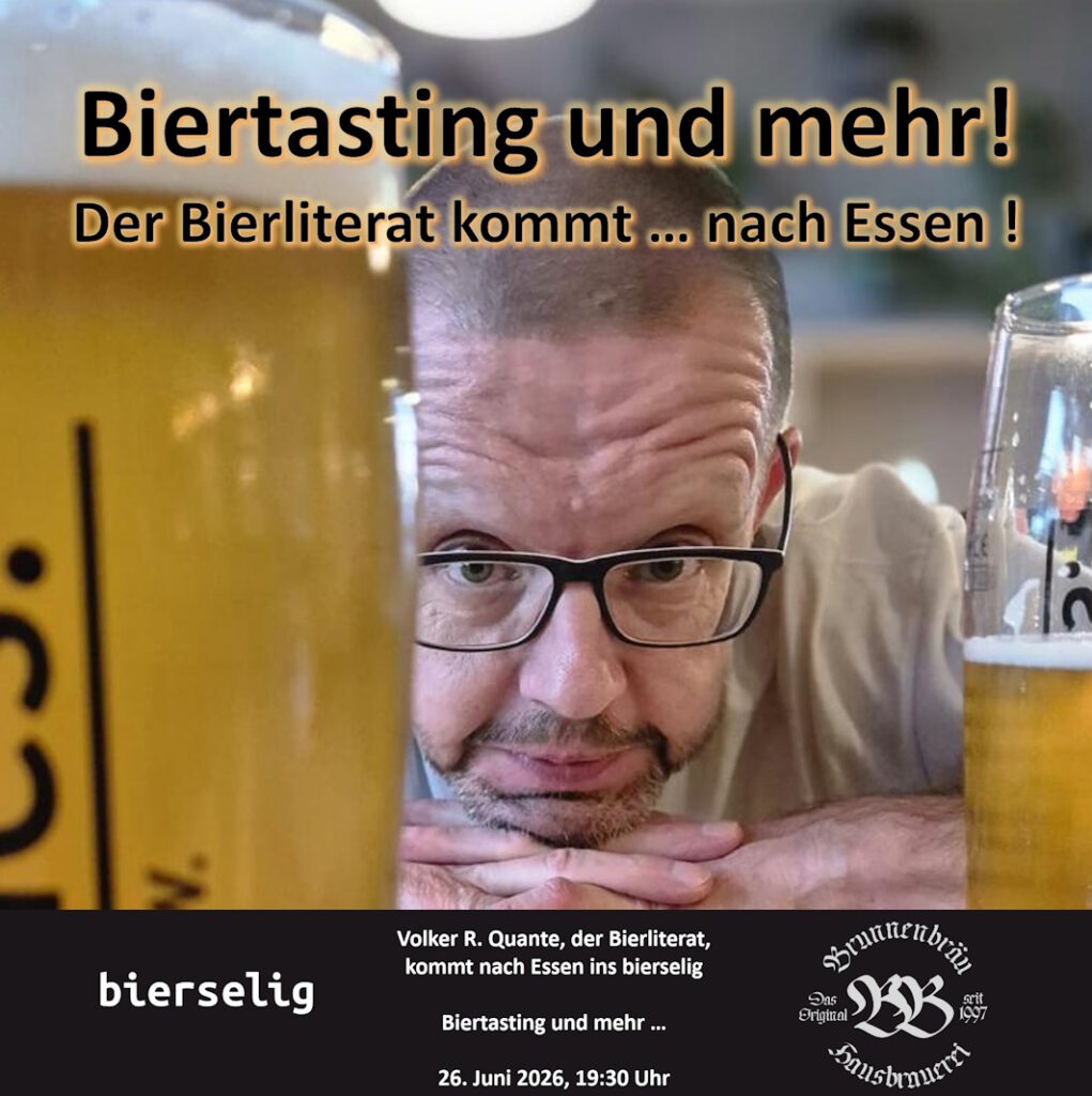 Die besten davon hat er immer dabei, und die allerbesten gibt’s am 26. Juni 2026 um 19:30 Uhr im bierselig zu hören. Bierselig? Kennt Ihr alle – DAS Fachgeschäft für Bierkultur in der Rütte! Tolles Ambiente, geile Biere, eine perfekt kuratierte Auswahl und … im Juni Austragungsort eines der kurzweiligsten Biertastings, das Ihr Euch vorstellen könnt.