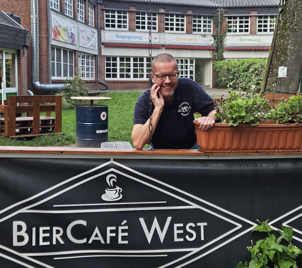 Ach, das BierCafé West ist alles in einem. Ein generationen- und kulturkreisübergreifender Treffpunkt, ein Restaurant mit italienischen, deutschen und türkischen Speisen, ein gemütliches Café, in dem gerade eine Geburtstagsfeier einer Seniorengruppe stattfindet. Ein Biergarten, in dem am letzten Septembertag ein paar Frischluftfanatiker die letzten Strahlen der Spätsommersonne genießen.