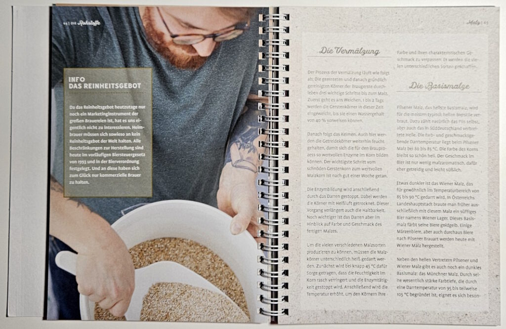 Das dritte Kapitel „Die Rohstoffe“ befasst sich mit … naja, den Rohstoffen. Wasser, Malz, Hopfen und Hefe. Welche Rolle spielen sie, welche verschiedenen Arten und Qualitäten gibt es, wie nutzt man sie. Auch hier gilt: Eingängig geschrieben, sich nicht in Details verzettelnd. Schön, dass in diesem Kapitel auch die Rede vom sogenannten „Reinheitsgebot“ ist: „Da das Reinheitsgebot heutzutage nur noch ein Marketinginstrument großer Brauereien ist, hat es uns eigentlich nicht zu interessieren.“ Jawoll!