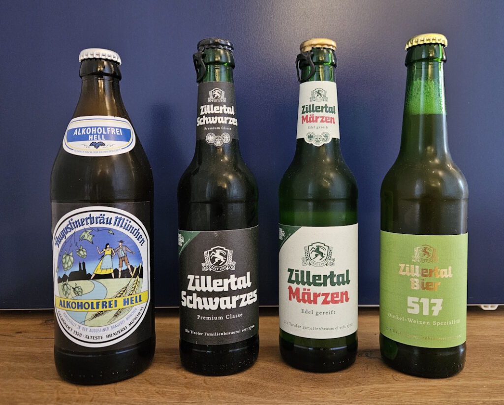 Der Inhalt? Ein flüssiger und herzlicher Gruß aus dem Allgäu, wo mein mir zum lieben Freund gewordener Mitarbeiter Thomas G. wohnt. Er war wohl unlängst in Österreich im Urlaub, und ein paar Biere der Zillertaler Brauerei haben in seinem Kofferraum den Weg über die Grenze gefunden. Und ein schönes Alkoholfreies aus München, in den Supermärkten nach wie vor stets ausverkauft, findet sich ebenfalls zwischen den Papppolstern.