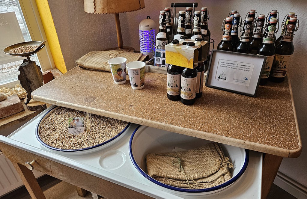 Beim Betreten des kleinen Verkaufsraums ist davon noch nicht allzu viel zu bemerken. Alles ist urgemütlich und mit viel Liebe zum Detail ein- und hergerichtet, Kerstin steht gut gelaunt hinter dem Verkaufstresen, und Bier gibt es auch noch. Allerdings: Bei genauem Hinsehen merke ich es doch: Im Schaufenster steht ein Schild „Danke!“, beim Verkaufsbier handelt es sich nur noch um eine einzige Sorte, und als Kerstin mir die Tür zum Sudhaus öffnet, sehe ich, dass das Sudwerk selbst schon verschwunden ist.