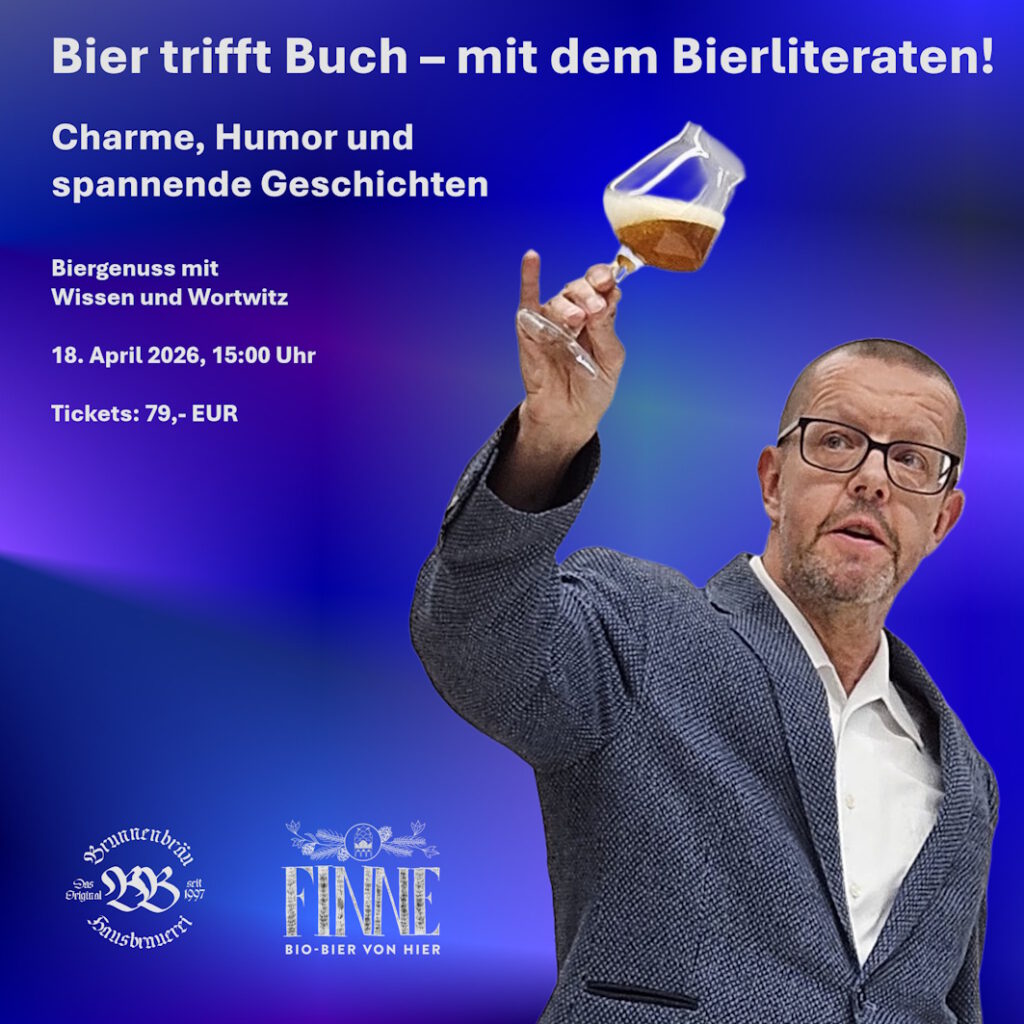 Freut Euch auf einen besonderen Nachmittag in der Finne Hafenbrauerei mit dem Bierliteraten und Biersommelier Volker R. Quante. Mit Charme, Humor und spannenden Geschichten verbindet er Biergenuss mit Wissen und Wortwitz. Begleitet wird der Abend von ausgewählten Bieren. Für die eine oder andere zusätzliche Überraschung sorgt der Betriebsleiter und Sommelier Sven von Finne.