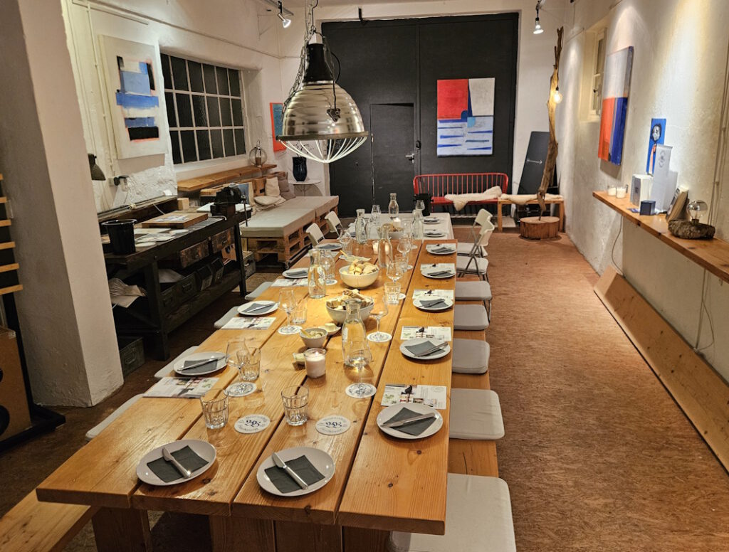 Ein uriges kleines Fachwerkhäuschen, das vor langer Zeit wohl einmal eine Schmiede beherbergt hat, ist jetzt ein kleines Atelier geworden – das Atelier Zwei Zwei Drei. Urig, gemütlich, ansprechend. Und: Wie geschaffen, um hier Bierverkostungen zu organisieren.