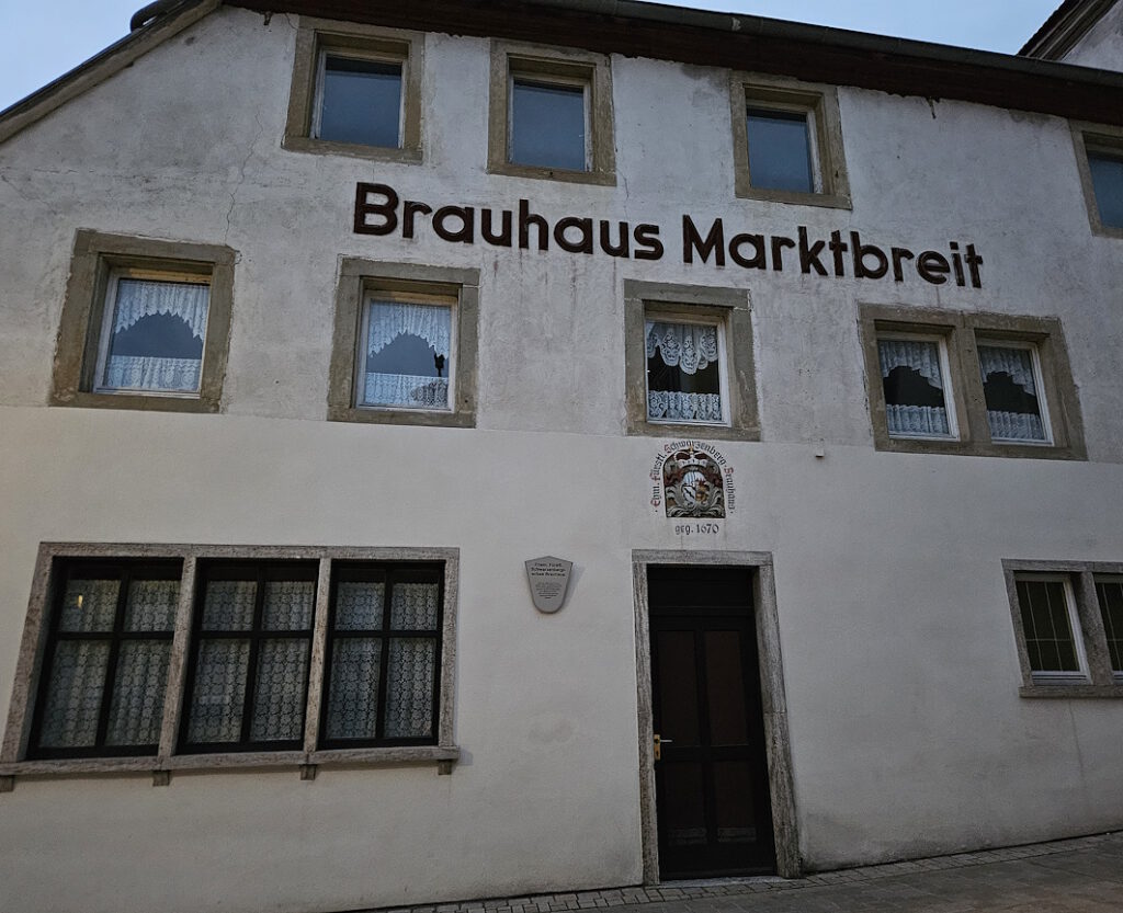 Jetzt bin ich aber positiv überrascht: Eine Kleinstadt nur, aber eine recht ansehnliche. Ich schaue links, schaue rechts – überall schöne Fachwerkhäuser. Und mittendrin: Ein altes Brauereigebäude, das des Brauhauses Marktbreit.