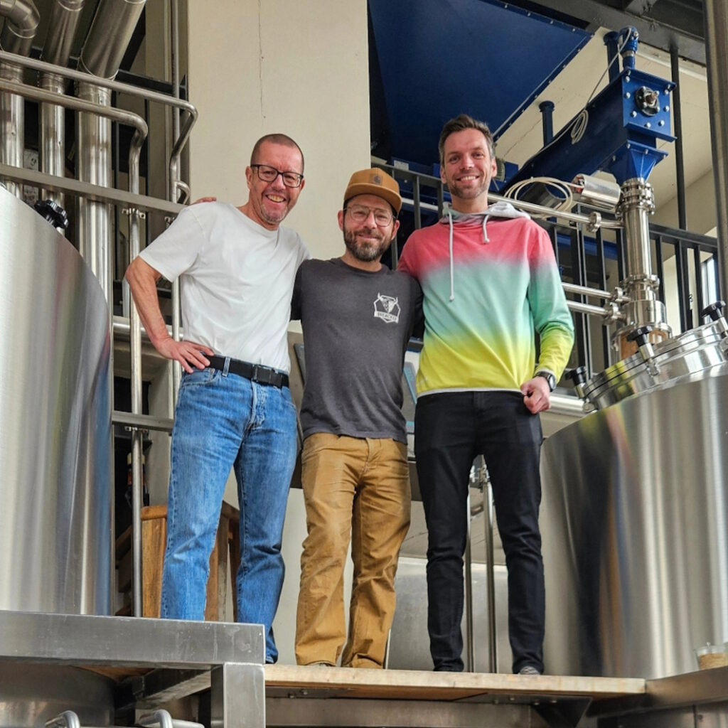 So stehen wir drei, Kolja, Lennart und ich, heute am frühen Morgen in Bremen bei der Freien Brau Union Bremen und brauen gemeinsam zwanzig Hektoliter „So’n Saftladen“. Mit nur ganz leicht abgewandeltem Rezept, um einen minimal runderen Körper und noch einen Tick mehr tropische Fruchtnoten zu erzeugen – grundsätzlich aber unverändert.